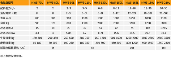 Note: The actual lifting capacity of the electromagnetic hoist is related to the density of the material, its composition, and the condition of the contact surface.