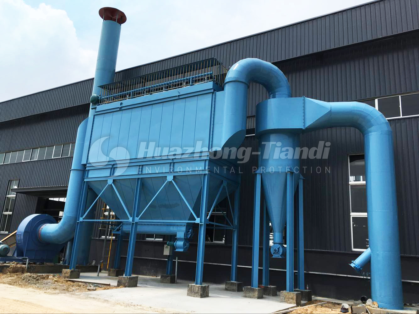 It features a cylindrical bag form and a reverse flow structure, allowing flue gas to enter the dust chamber from the bottom. The bags are externally filtered, employing high-pressure and low-pressure long bag pulse cleaning, with offline cleaning in separate compartments. This design is straightforward, making it suitable for emission standards of 15mg and 20mg in general areas. Its characteristics include: